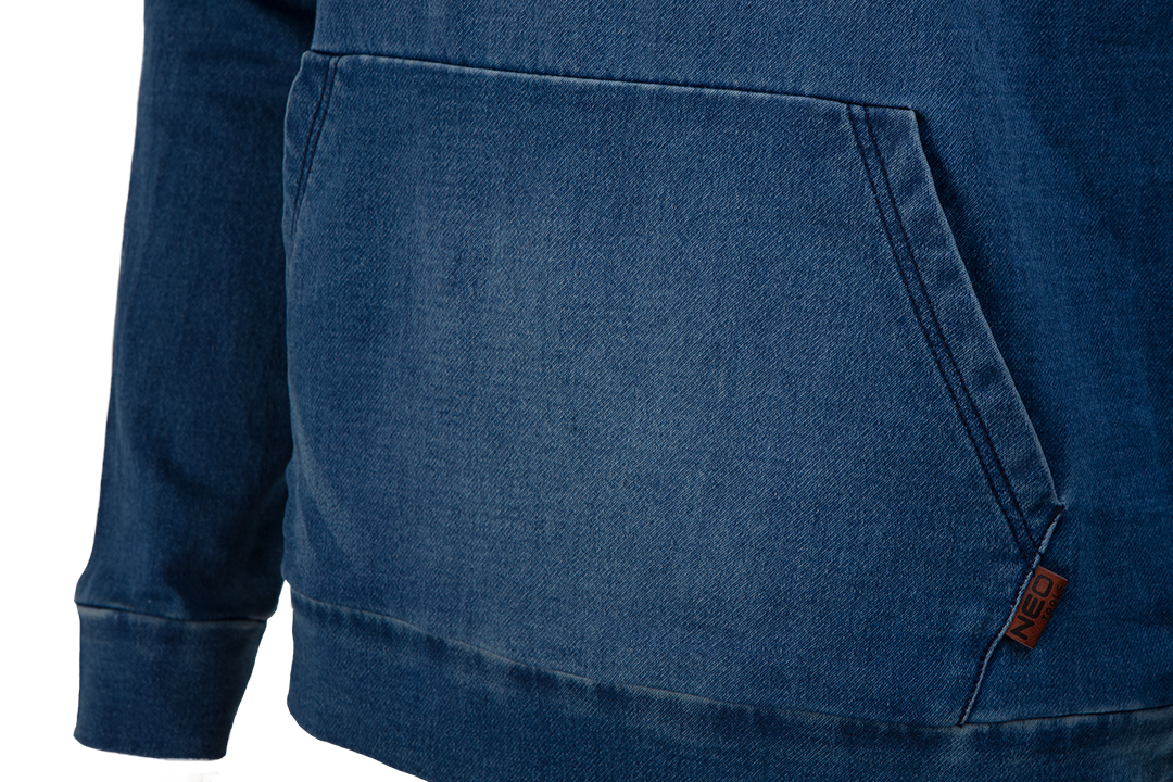 Bluza robocza z kolekcji NEO DENIM zaprojektowana w Polsce przez technologów odzieży NEO, z myślą o każdym szczególe i zachowaniu stylu. Wygodna i praktyczna - duża kieszeń typu kangurka na przydatne narzędzia lub telefon. Jakość ubrania roboczego świetnie sprawdzi się jako ubiór codzienny