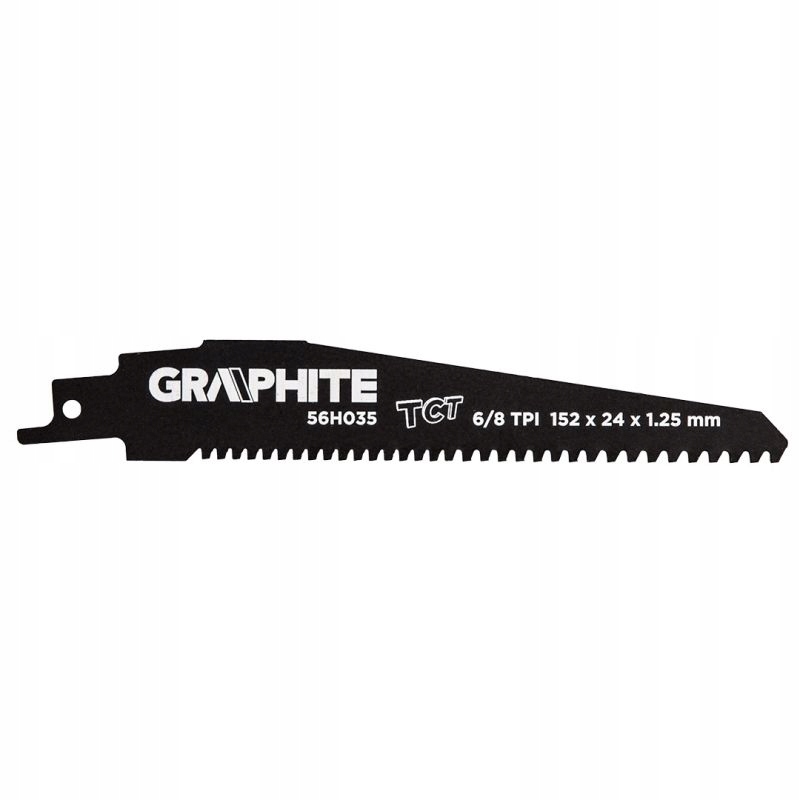 Brzeszczot do piły szablastej GRAPHITE o długości 152 mm oraz zmienne uzębienie 8/6 zębów na cal długości przeznaczone do cięcia m.in. drewna z gwoździami, tworzyw sztucznych, kompozytów wzmacnianych włóknem szklanym, żywicy epoksydowej, płyt gipsowo kartonowych, ram okiennych, drewna, metalu oraz płyt włóknocementowych przy użyciu pił szablastych. Maksymalna grubość materiałów to 100 mm. Znajduje zastosowanie przy pracach remontowych, budowlanych, rozbiórkowych oraz w przydomowych pracach amatorskich. Umożliwia cięcie prostolinijne. Brzeszczot powoduje niższe zapylenie podczas cięcia w porównaniu do tradycyjnych metod. Umożliwia cięcie blisko krawędzi oraz w miejscach trudno dostępnych.
