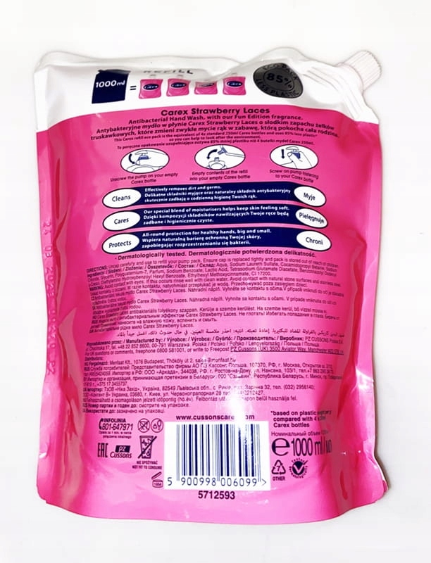 CAREX MYDŁO W PŁYNIE ŻELKA TRUSKAWKOWA 1000ML - KUPUJESZ REFILL 1L