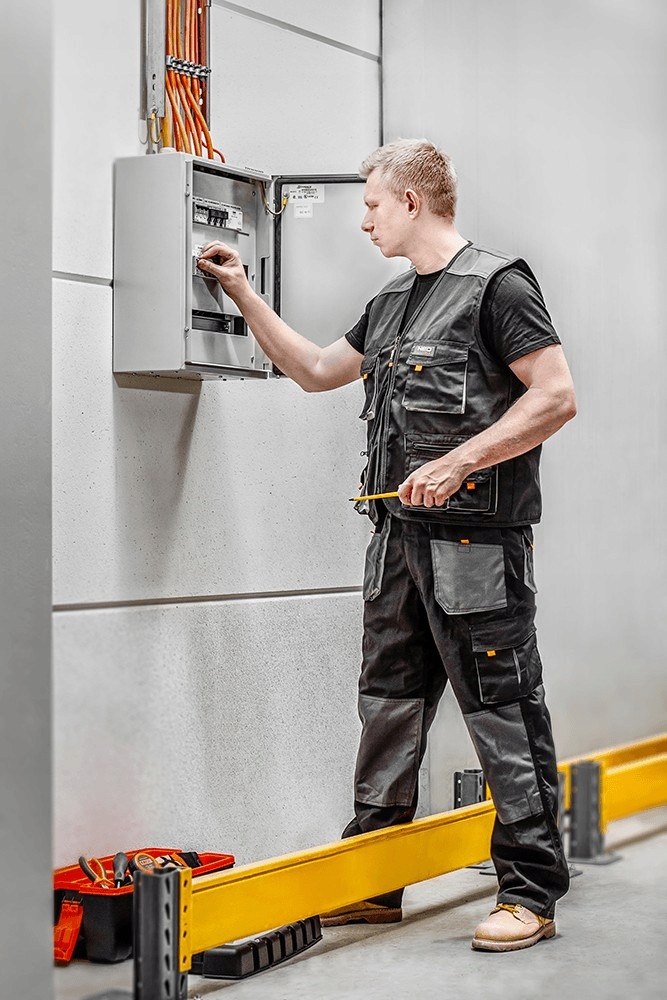 Kamizelka robocza NEO (nr ref. 81-260-XXL) to praktyczne rozwiązanie podczas wszystkich prac, zarówno profesjonalistów, jak i majsterkowiczów. Wykonana z mocnej tkaniny Oxford, charakteryzującej się bardzo dobrą wytrzymałością na działania mechaniczne. Potrójnie przeszyte szwy, zwiększające trwałość oraz elementy odblaskowe, zapewniające widoczność użytkownika. Solidne kieszenie wytrzymują duże obciążenie i przechowają wszystkie niezbędne podczas pracy narzędzia. Dodatkowym atutem jest kieszeń na smartfona, dzięki której telefon można mieć zawsze przy sobie, nie martwiąc się o jego bezpieczeństwo. Gwarantem jakości jest certyfikat europejski oraz wykonanie zgodne z normą EN ISO 13688:2013. Marka NEO spełnia oczekiwania profesjonalistów.