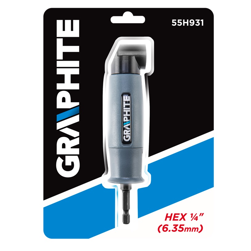 Kątowa nasadka na bity 1/4" GRAPHITE Przeznaczona do wkrętarek akumulatorowych, o kącie nachylenia 90° z uchwytem magnetycznym 6.35 mm. Umożliwia pracę w trudno dostępnych miejscach, z maksymalnymi obrotami do 600 obr./min. Wyróżnia się wysoką jakością wykonania gwarantującą trwałość narzędzia. 24 miesięczna gwarancja producenta potwierdza wysoką jakość narzędzia.
