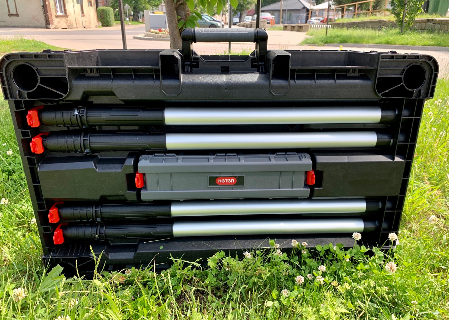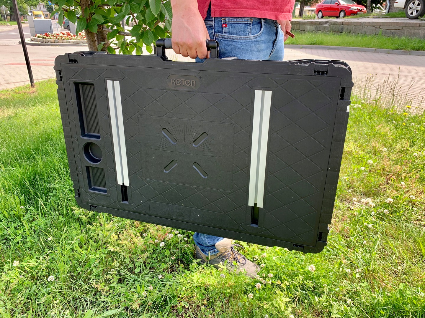 - rączka do przenoszenia złożonego stołu