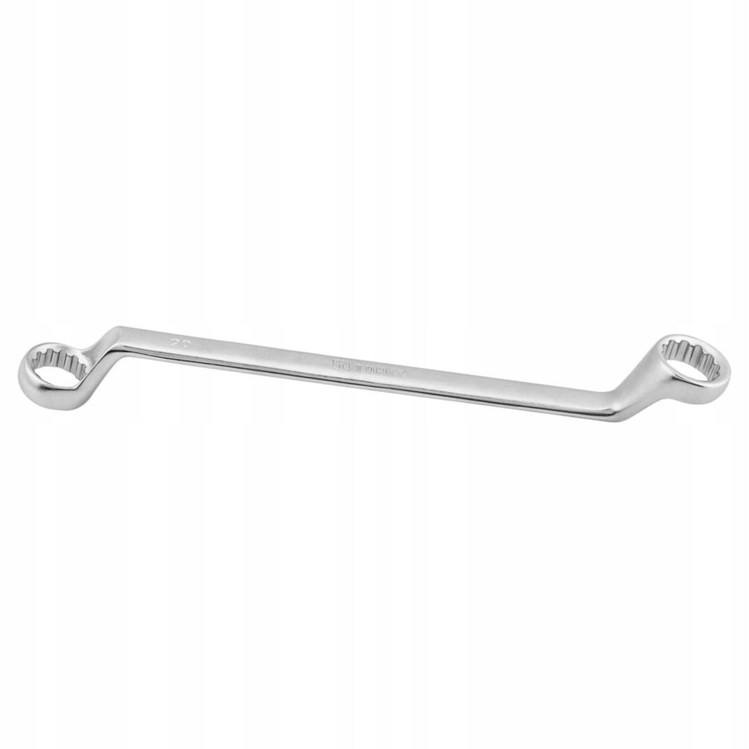 Klucz oczkowy odgięty TOPEX (nr ref. 35D817) dzięki swojej konstrukcji umożliwia pracę przy śrubach umieszczonych w zagłębieniach. Po obu stronach posiada oczka o rozmiarach 20 i 22 mm. Wykonany z wysokiej jakości stali chromowo-wanadowej, zapewniającej długą żywotność narzędzia. Marka TOPEX skierowana jest do majsterkowiczów.