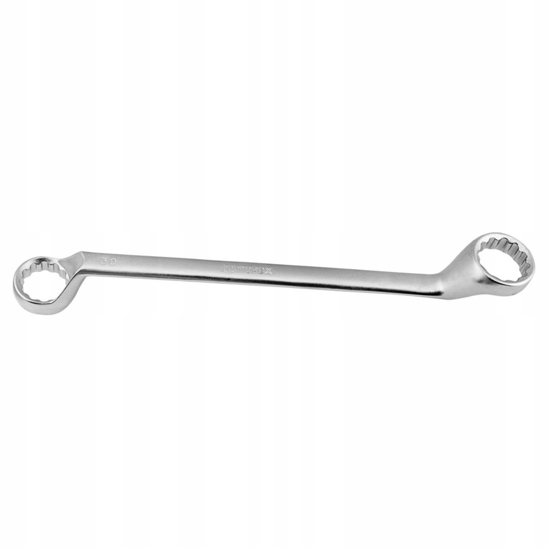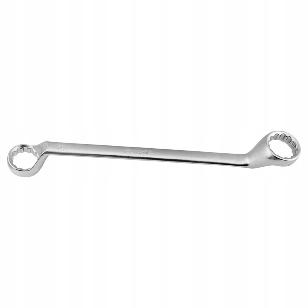 Klucz oczkowy odgięty TOPEX (nr ref. 35D823) dzięki swojej konstrukcji umożliwia pracę przy śrubach umieszczonych w zagłębieniach. Po obu stronach posiada oczka o rozmiarach 30 i 32 mm. Wykonany z wysokiej jakości stali chromowo-wanadowej, zapewniającej długą żywotność narzędzia. Marka TOPEX skierowana jest do majsterkowiczów.