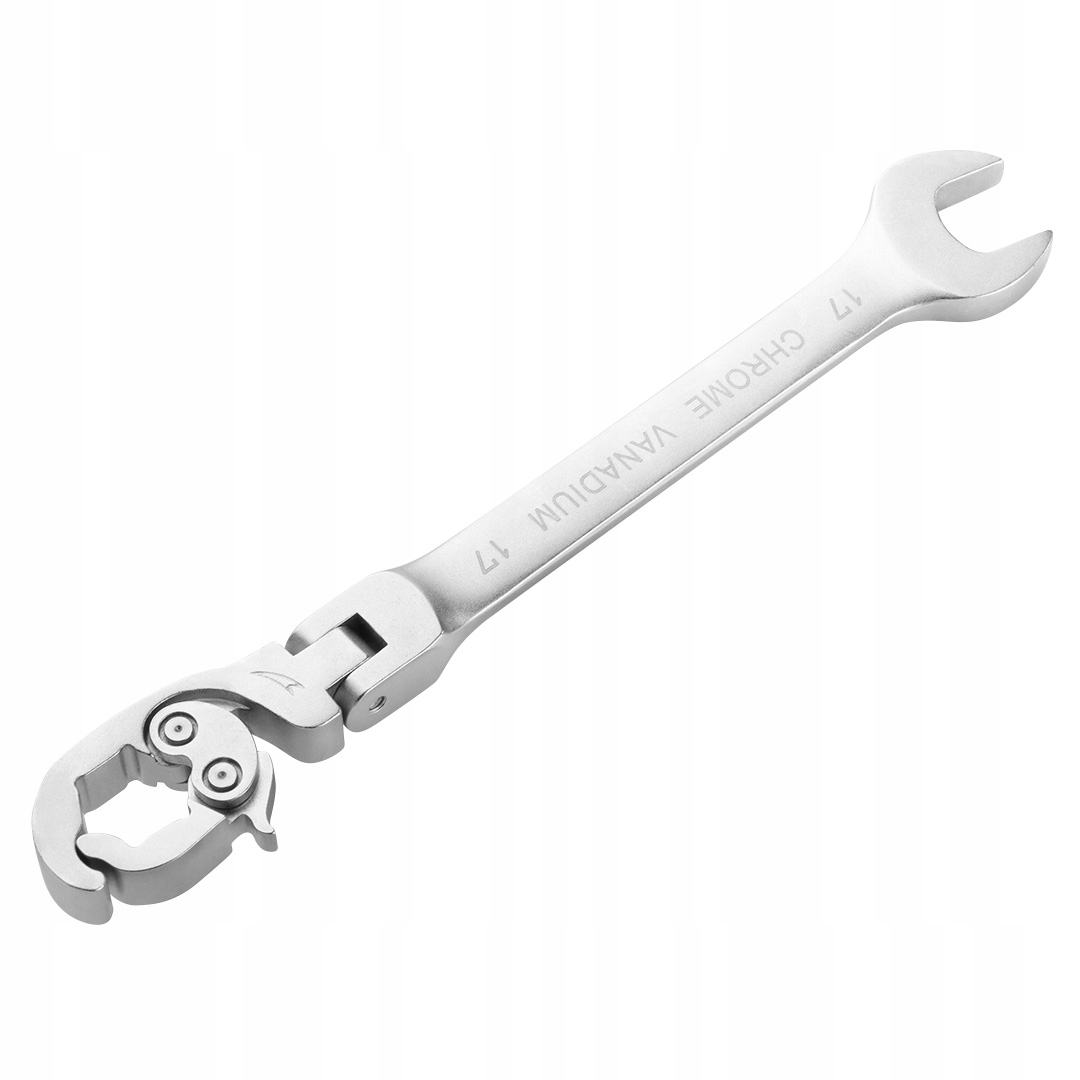 Klucz płasko-oczkowy, przegubowy, oczko otwierane z zapadką 17 mm