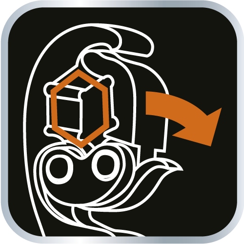 Klucz płasko-czokowy, przegubowy, oczko otwierane z zapadką pozwala na pracę kluczem na zasadzie grzechotki (skok co 60 stopni), można zakładać oczko na śruby umieszczone na przewodach, prętach gwintowanych itp., przegub pozwala odchylać oczko odo osi klucza - o 90 stopni w każdą stronę, rozmiar 13 mm, stal CrV
