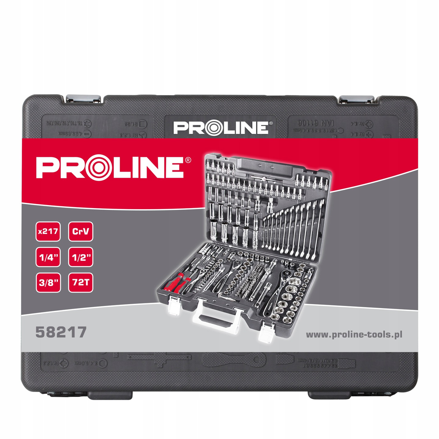 Wyselekcjonowana grupa narzędzi Proline przeznaczona do profesjonalnego użytku. Stal chromowo-wanadowa. Klucze do samochodu chromowane i polerowane. Precyzyjna grzechotka 72 zęby z dwukomponentową rękojeścią. Kufer na narzędzia wyposażony w metalowe klamry
