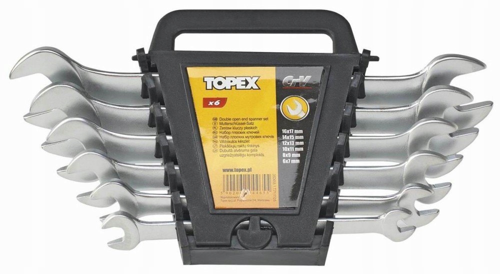 Zestaw kluczy płaskich TOPEX (nr ref. 35D655) bardzo przydatny przy pracach mechanicznych oraz przy majsterkowaniu. Klucze wykonane z wytrzymałej stali chromowo-wanadowej, zapewniającej długą żywotność narzędzia. Ułożone w praktycznym opakowaniu z tworzywa sztucznego, co ułatwia przechowywanie. Marka TOPEX skierowana jest do majsterkowiczów.