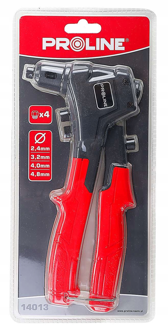 Nitownica dźwigowa polskiej marki Proline przeznaczona do nitów zrywalnych aluminiowych i stalowych.