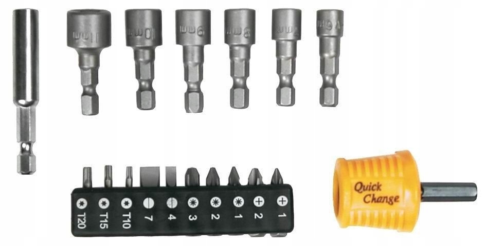 Końcówki wkrętakowe i nasadki z uchwytem, zestaw 18 szt.