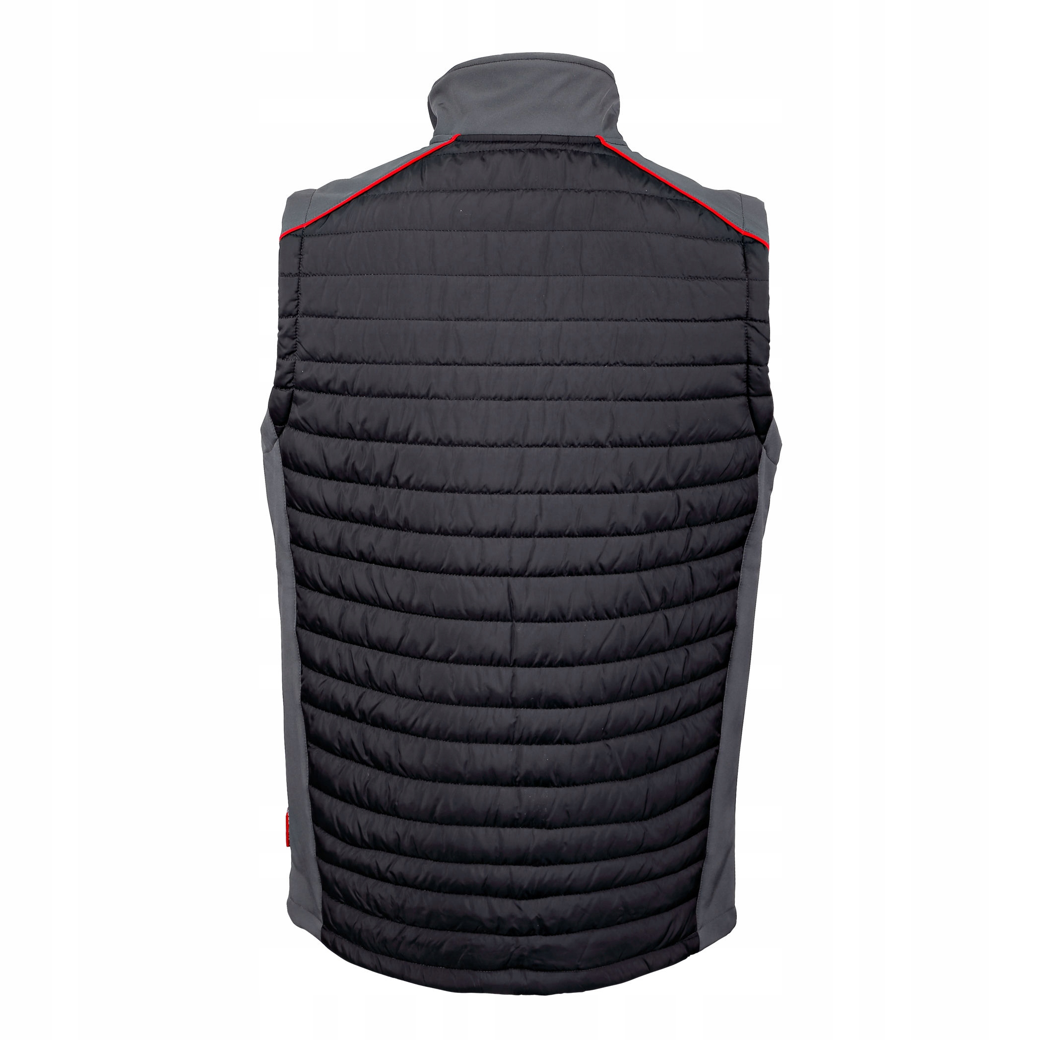MATERIAŁ: Powłoka: 100% poliester, 70 g/m2 oraz tkanina typu soft-shell, 96% poliester, 4% elastan, 310g/ m2. Ocieplina: 120g/m2. Podszewka: tafta, 50g/m2 oraz micropolar 160g/m2. Wstawki z 3- warstwowej tkaniny soft-shell z membraną TPU, wodoodpornej (8000mm), oddychającej (3000g/m2/24h), gwarantującej wysoki komfort użytkowania. 3 kieszenie zamykane na suwak (2 zewnętrzne i 1 wewnętrzna). Zamek błyskawiczny. Osłona suwaka. Regulacja szerokości dołu kamizelki za pomocą specjalnego ściągacza. NORMA: EN ISO 13688