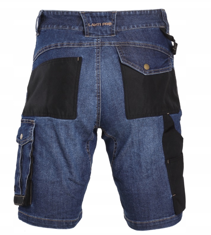 Idealne na gorące i upalne dni krótkie spodenki Lahti Pro o modelu L40707. Spodenki wykonano z jeansu na który składa się 70% bawełny, 28% poliestru i 2% elastanu. Dwanaście kieszenie w tym dwie zapinane na nap. Kieszeń na telefon komórkowy zabezpieczona tkaniną odbijającą promieniowanie elektromagnetyczne (EMF Cell Phone Protection). Materiał z dodatkiem stretchu zapewnia elastyczność i wygodę podczas użytkowania. Dodatkowe wzmocnienie szwów w kroku oraz podwójne szwy zapewniają że spodenki są bardzo wytrzymałe. Innowacyjna regulacja szerokości w pasie za pomocą specjalnej konstrukcji z elastyczną taśmą bez potrzeby użycia paska do spodni. Dodatkowo spodenki posiadają oczko na klucze, szlufkę na młotek, szlufki na pasek. Wzmocnione kieszenie materiałem 600D poliester odpornym na przetarcia. Modny i ciekawy krój slim fit. Wszywka identyfikacyjna. Spodenki jeansowe Lahti Pro L40707 posiadają deklarację CE oraz zgodne są z normą EN ISO 13688. Pierwsza kategoria środków ochrony indywidualnej.