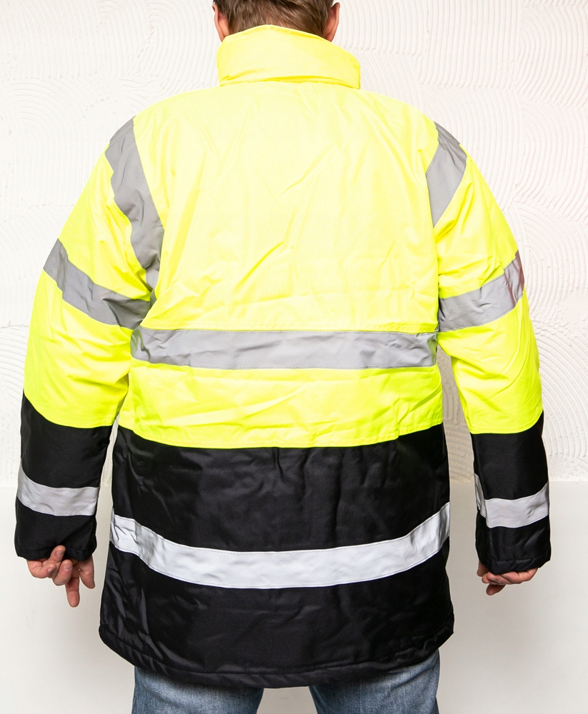 - Kurtka posiada II kategorię bezpieczeństwa, spełnia normy: EN ISO 13688, EN ISO 20471 oraz posiada certyfikat CE