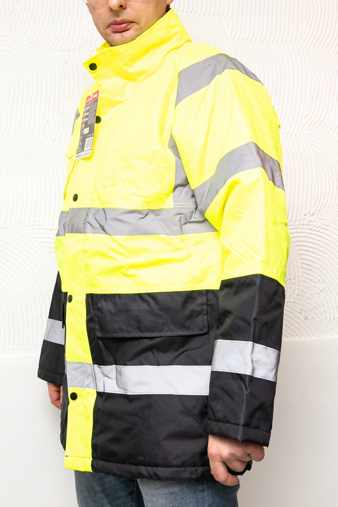 - Kurtka posiada II kategorię bezpieczeństwa, spełnia normy: EN ISO 13688, EN ISO 20471 oraz posiada certyfikat CE