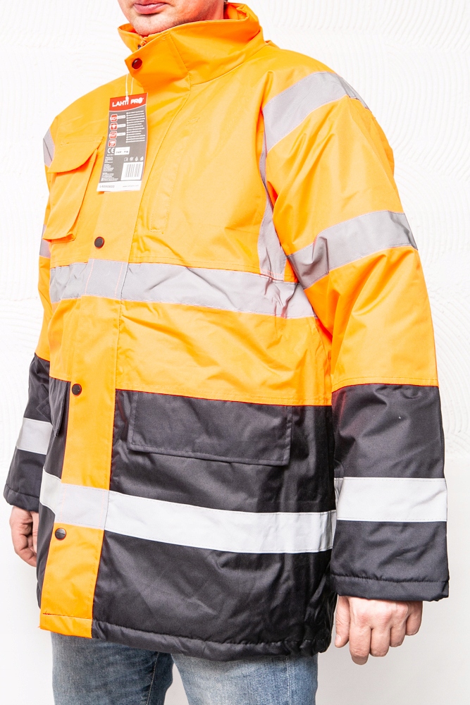 - Kurtka posiada II kategorię bezpieczeństwa, spełnia normy: EN ISO 13688, EN ISO 20471 oraz posiada certyfikat CE