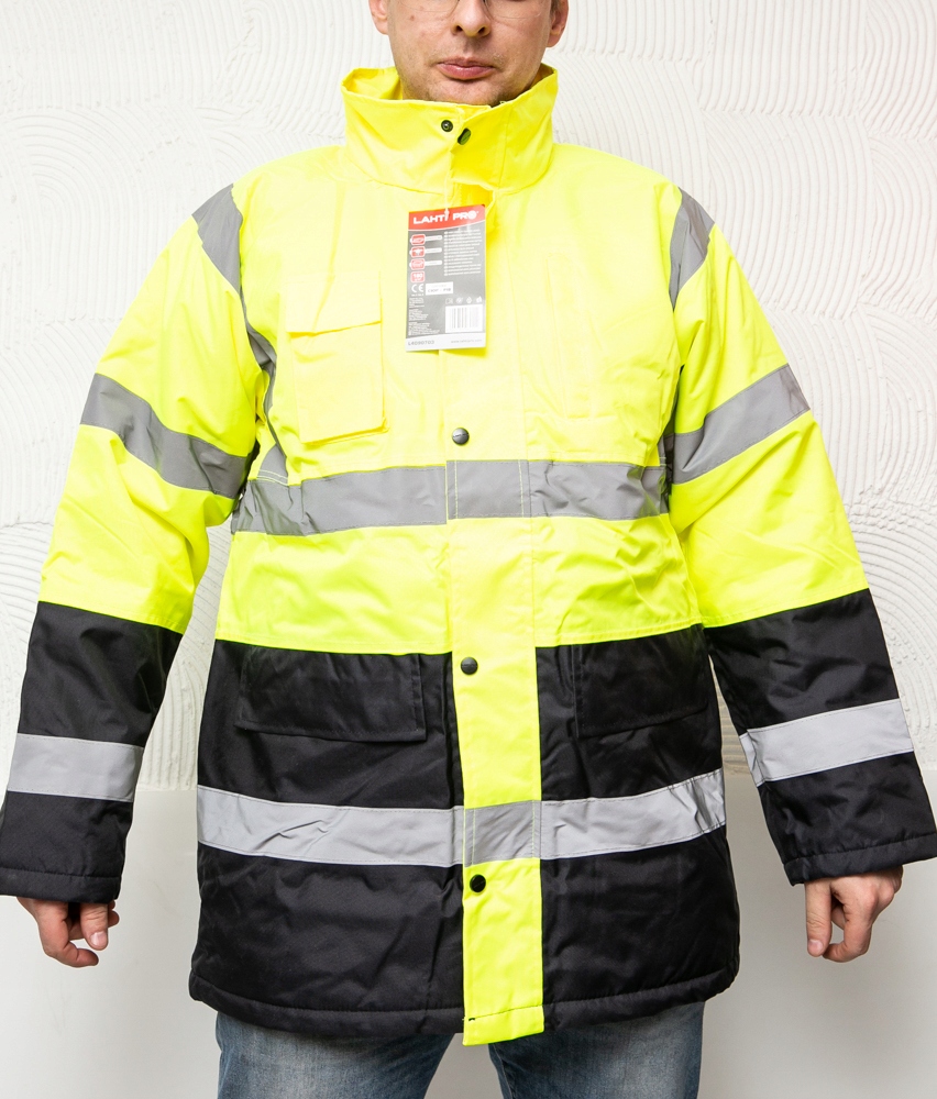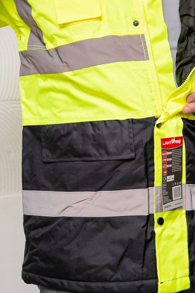 - Kurtka posiada II kategorię bezpieczeństwa, spełnia normy: EN ISO 13688, EN ISO 20471 oraz posiada certyfikat CE
