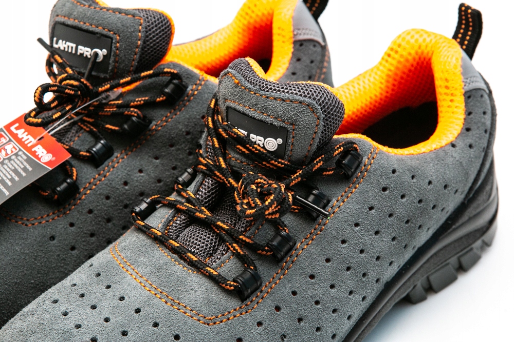 Półbuty ochronne Lahti PRO L30416 to obuwie bezpieczne klasy S1P SRC, wykonane z wytrzymałej skóry zamszowej w kolorze szarym. Zewnętrzna konstrukcja buta połączona z perforowaną cholewką znacznie poprawia wentylację stopy. Podszewka z poliestrowej dzianiny siatkowej. Wymienna wyściółka podeszwy pozwala na zastosowanie dowolnej, zadaniowej lub klasycznej wyściółki. Podeszwa z poliuretanu dwugęstościowego o właściwościach antypoślizgowych – zarówno na podłożu stalowym, jak i ceramicznym. Głęboki protektor optymalizuje stabilność obuwia.