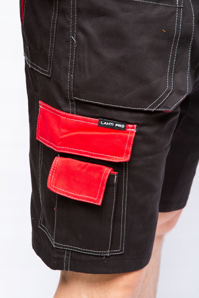 Nowa linia odzieży na lato marki Lahti Pro L40704. Spodenki robocze krótkie w kolorze czerwono czarnym wykonano ze 100% bawełny o gramaturze 245g/m2. Bardzo lekkie i przewiewne idealnie nadają się się do pracy w upalne i gorące dni. Spodenki posiadają sześć kieszeni w tym trzy zapinane na rzep, oczko na klucze oraz dodatkowo kieszeń na telefon komórkowy. Regulacja szerokości w pasie za pomocą gumki oraz wszywka identyfikacyjna. Mocne podwójne szwy. Spodenki posiadają certyfikat CE oraz normę EN ISO 13688. Są w pierwszej kategorii środków ochrony indywidualnej.