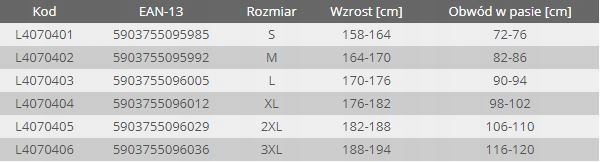 Spodenki są dość elastyczne i osobiście uważamy, że rozmiar L jest odpowiedni nawet dla osoby o wzroście 180 cm. Lepiej jest kupić spodenki dopasowane niż większe, ze względu na gumki na bokach spodenek, które idealnie niwelują różnice w rozmiarach.