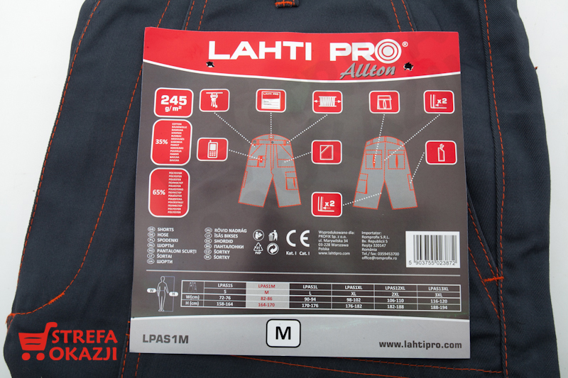 Spodenki ochronne do pasa posiadają wszywkę identyfikacyjną