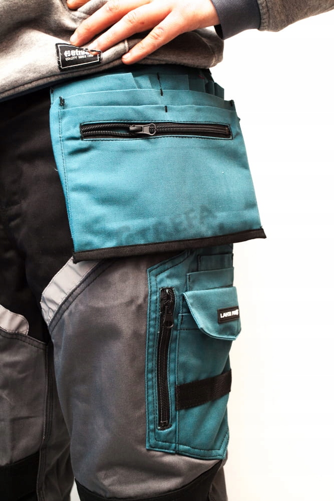 - Praktyczne kieszenie monterskie z możliwością regulacji i odpięcia