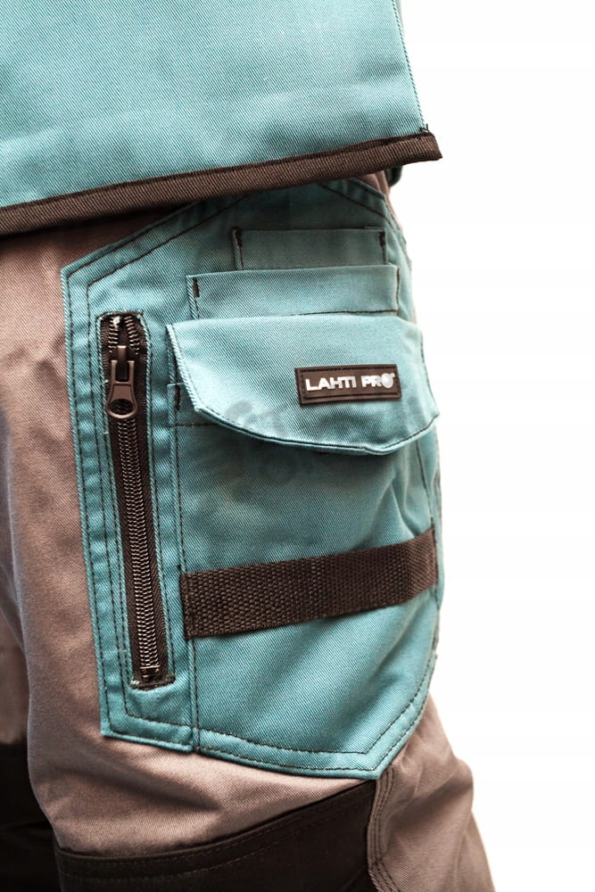 - Praktyczne kieszenie monterskie z możliwością regulacji i odpięcia