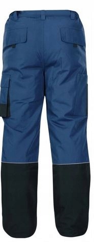 Wytrzymała impregnowana tkanina pokryta PU. Powłoka wykonana w 100% z poliestru 600D Oxford o gramaturze 200 g/m2. Ocieplina: 160 g/m2. Podszewka: tafta 50 g/m2. Spodnie posiadają 6 kieszeni w tym 3 zapinane na rzep oraz kieszeń na telefon. Zamek błyskawiczny z dodatkową klapką na rzep. Regulacja szerokości w pasie za pomocą gumki. Szelki z regulacją długości. Regulacja szerokości nogawek u dołu za pomocą suwaka. Odblaskowe elementy