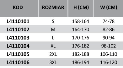 Spodnie znajdują się w I kategorii bezpieczeństwa, spełniają normę EN ISO 13688 oraz posiadają certyfikat CE.