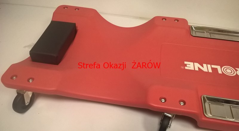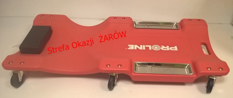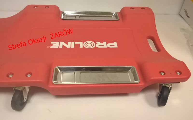 Konstrukcja leżanki warsztatowej opiera się na 6 gumowanych kołach podporowych umożliwiających przemieszczanie się w dowolnym kierunku. Tapicerowany podgłówek daje wytrzymałość, a akcesoria warsztatowe Proline służą przez długi czas.