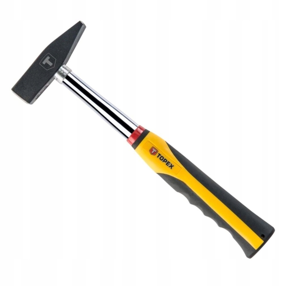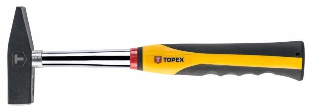 Młotek ślusarski TOPEX (nr ref. 02A715) o masie 500 g przeznaczony jest do drobnych prac montażowych i budowlanych. Trzonek wykonany z hartowanej stali. Ergonomiczna rękojeść, pokryta antypoślizgowym materiałem zapewniają wygodę i bezpieczeństwo podczas pracy. Certyfikaty TÜV, GS oraz wykonanie produktu zgodnie z normą DIN 1041 są gwarantem jego niezawodności. Marka TOPEX skierowana jest do majsterkowiczów.