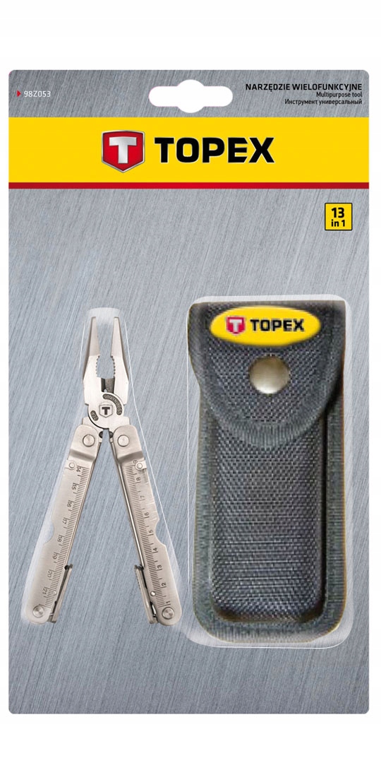 Narzędzie wielofunkcyjne TOPEX (nr ref. 98Z053) to innowacyjne rozwiązanie. W jednym narzędziu znajduje się 13 różnych końcówek. Umieszczone w praktycznym etui ułatwiającym przechowywanie. Marka TOPEX skierowana jest do majsterkowiczów.
