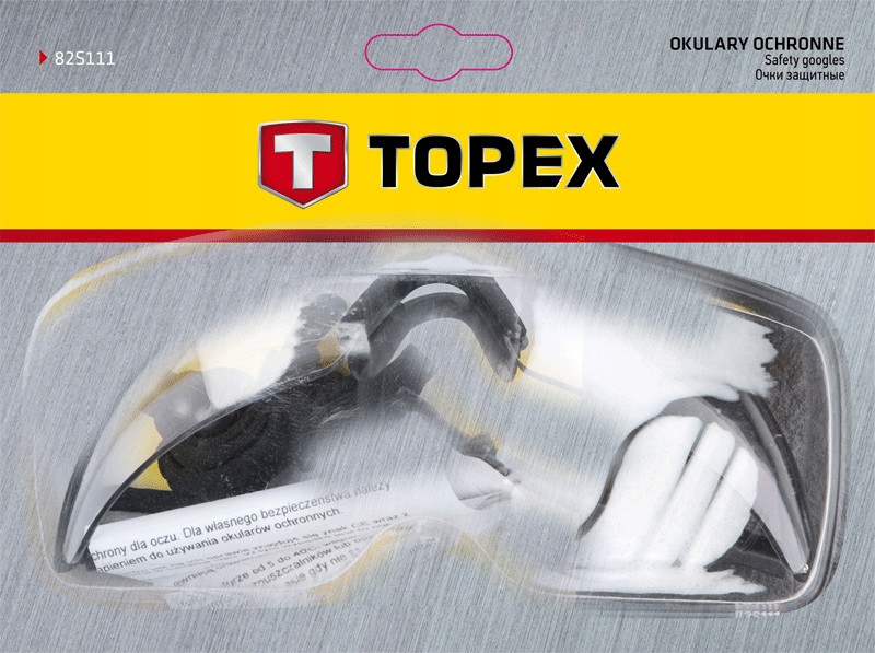 Okulary ochronne TOPEX (nr ref. 82S111) to podstawowy artykuł ochronny podczas większości prac. Dzięki dużej powierzchni zabezpieczają oczy przed mechanicznymi urazami. Niepodważalnym atutem jest regulacja zauszników pozwalająca na idealne dopasowanie do głowy. Elastyczny pasek łączący końce zauszników pozwala na stabilne umocowanie. Oznaczenie CE to gwarancja bezpieczeństwa dowodząca, że produkt spełnia wszystkie wymagania unijne. Marka TOPEX skierowana jest do majsterkowiczów.