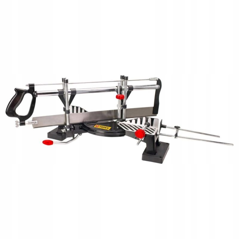 Piła kątowa TOPEX (nr ref. 10A055) o długości ostrza 550 mm. Przeznaczona do cięcia pod kątem od 45 do 135 ustawionym na przyrżni. Wykonana z aluminium, dzięki czemu jest lekka i wygodna w użyciu. Wygodny uchwyt z tworzywa sztucznego dobrze leży w dłoni, co podnosi komfort pracy. Marka TOPEX skierowana jest do majsterkowiczów.