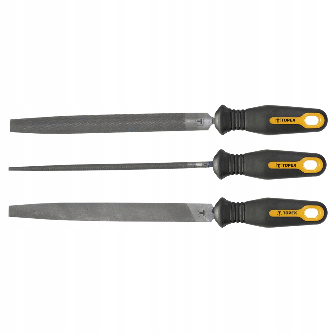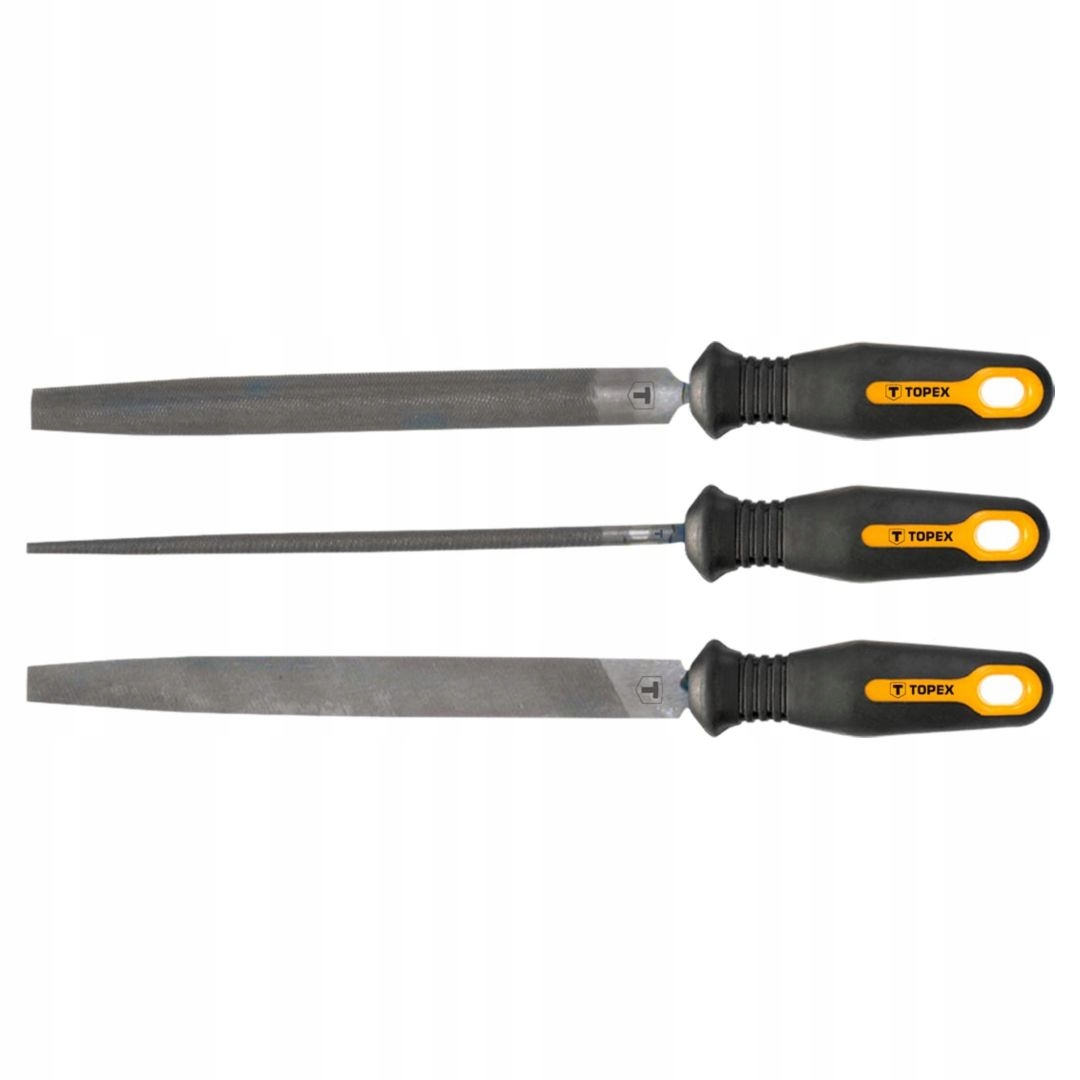Pilniki do metalu TOPEX (nr ref. 06A230) przeznaczone do szlifowania metalu. Trzy uniwersalne kształty pozwalają na różnorodne zastosowanie. Wykonane z wysokiej jakości stali T12. Ergonomiczny uchwyt pokryty antypoślizgowym materiałem zapewnia wygodę i bezpieczeństwo podczas pracy. Marka TOPEX skierowana jest do majsterkowiczów.