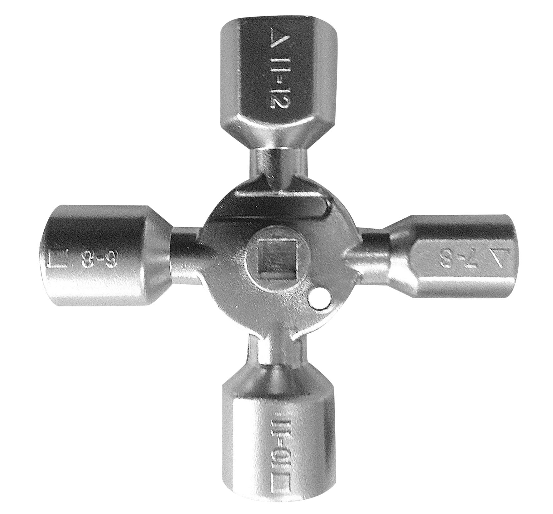 <>Wielofunkcyjny klucz do szaf rozdzielczych Proline 18189<>- Wielofunkcyjny klucz pasujący do najpopularniejszych systemów zamykania stosowany w szafach rozdzielczych, a także skrzynkach systemów klimatyzacyjno-wentylacyjnych, wodno-kanalizacyjnych, gazowych oraz wszelkiego rodzaju instalacjach elektrotechnicznych<>- Klucz składa się z dwóch części w kształcie krzyża połączonych ze sobą mocnym magnesem<>- W zestawie bit dwustronny połączony z kluczem stalową linką<>- Dwustronna końcówka wkrętakowa: profil płaski 1,0 x 7 mm oraz profil krzyżowy PH2<>- 10 profili. 2 końcówki krzyżowe. 1 klucz<>- Produkt dostarczany na blistrze