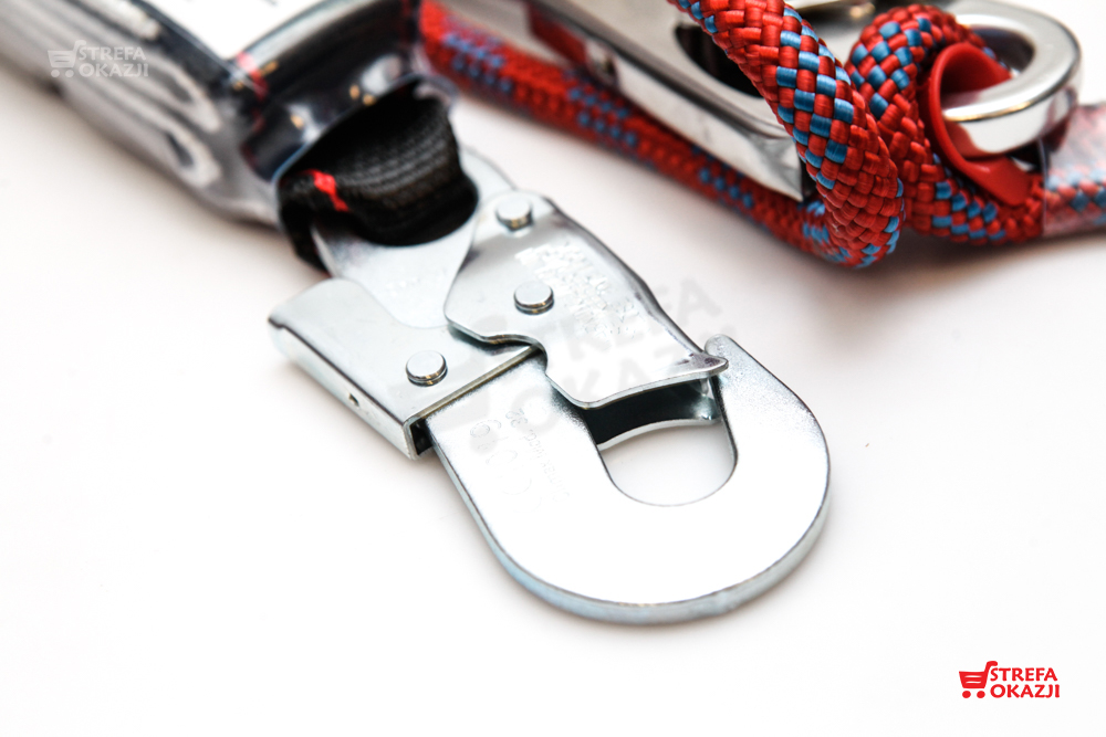 Amortyzator bezpieczeństwa z linką bezpieczeństwa poliamidową Lahti Pro L8020300. Całkowita długość urządzenia 1,75 m. Amortyzator wykonany z taśmy poliamidowej. Zakończenia wyposażone w stalowe haki z zatrzaskiem. Pętle linki zaopatrzone w oczka zabezpieczające przed przetarciem. Urządzenie posiada certyfikat CE. Amortyzatory bezpieczeństwa są składnikiem osobistego sprzętu chroniącego przed upadkiem z wysokości zgodnym z normą EN 355. Posiadają deklarację zgodności CE oraz trzeci najwyższy poziom środków ochrony indywidualnej.