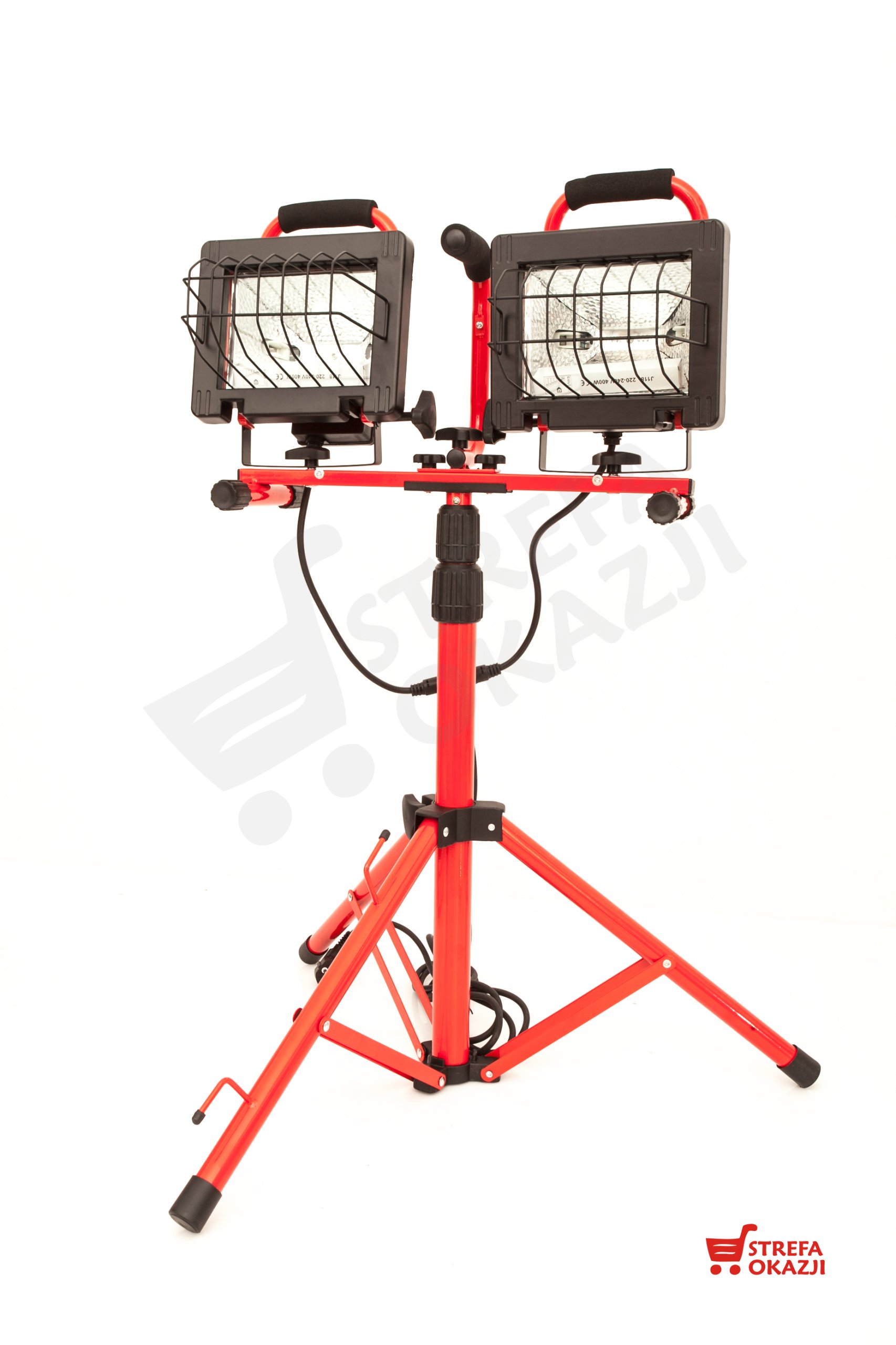 Statyw regulowany, uchwyt do przenoszenia, opcja montażu na statywie oraz bezpośrednio na podłożu.