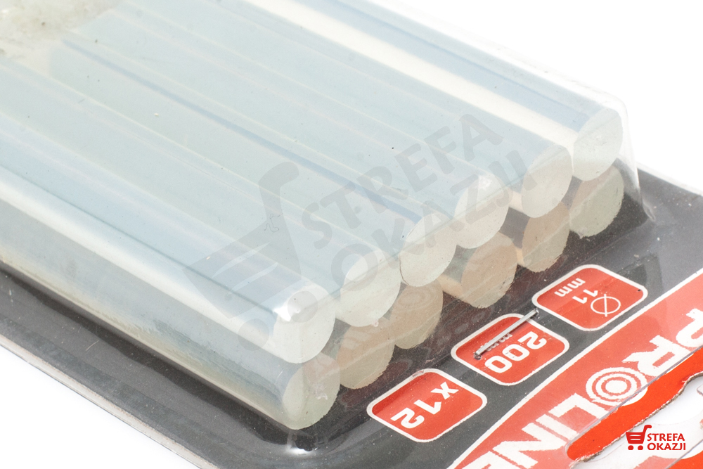 Opakowanie zawiera 12 sztuk uniwersalnego kleju w tubach o średnicy 11 mm i długości 200mm.