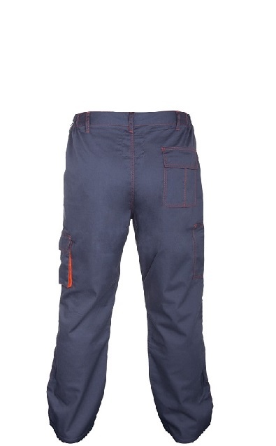 Spodnie BHP posiadają 5 kieszeni w tym 2 zapinane na rzep.