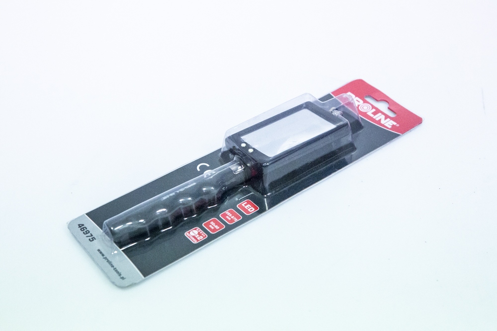 Lusterko inspekcyjne marki Proline o symbolu 46975 idealnie nadaję się do oglądania elementów w trudno dostępnych miejscach. Dzięki podświetleniu LED istnieje możliwość oglądania elementów w ciemnych miejscach. Podświetlenie zasilane jest jedną baterią LR44