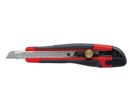 - Korpus plastikowy z gumową antypoślizgową wkładką i z precyzyjną blokadą ostrza