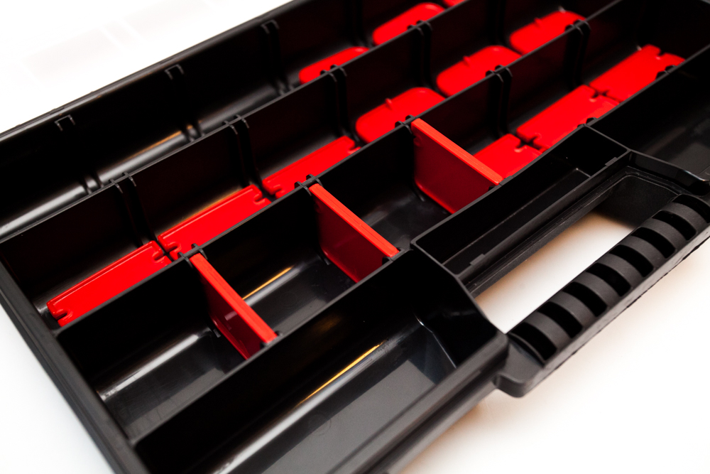 - Organizer narzędziowy idealny do przechowywania drobnych przedmiotów typu śrubki, nakrętki, podkładki, wkręty, kołki itp.