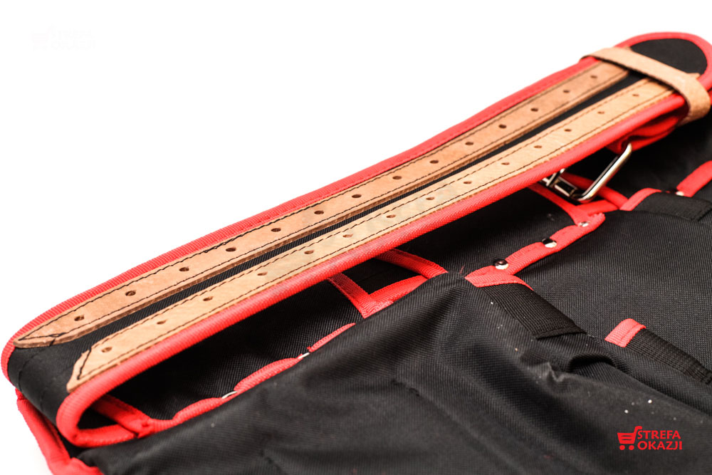 Solidny, wzmocniony skórzany pas posiadający 16 kieszeni może nawet zastąpić skrzynie narzędziową.