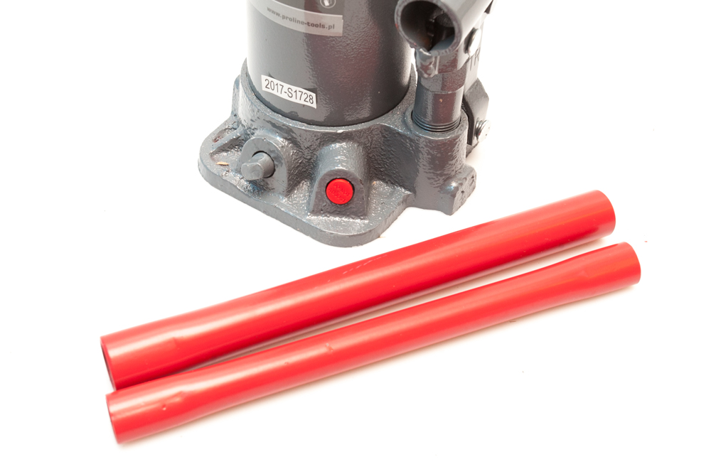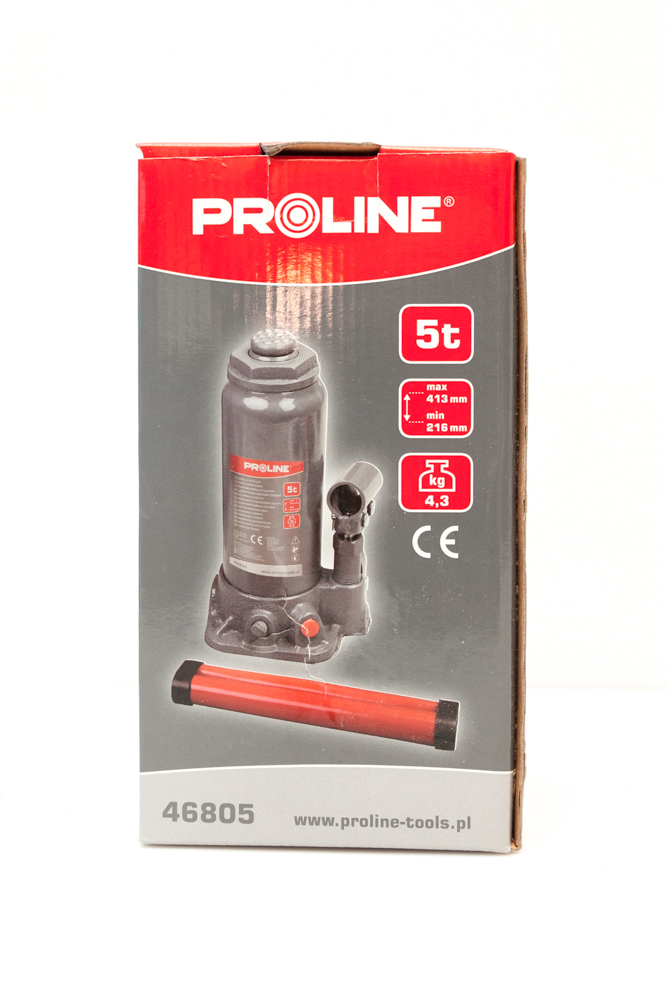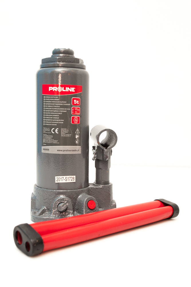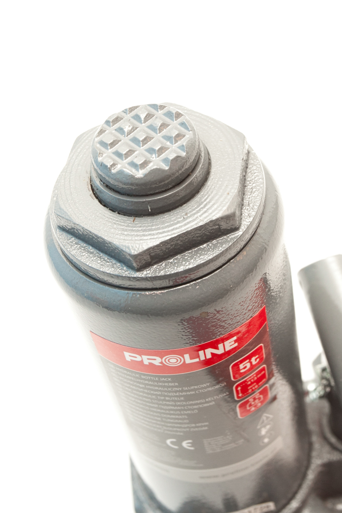 Podnośniki butelkowe hydrauliczne marki Proline. Tłok podnośników lewarków pokryty jest niklem, co wygładza jego powierzchnię i podnosi wydajność. System zaworów precyzyjnie dawkuje olej, co pomimo niewielkiego skoku tłoka zapewnia jego wysoką wydajność pod maksymalnym obciążeniem. Dodatkowo wykręcana stopa w tłoku podnośnika posiada silny, drobnozwojny, trapezowy gwint, odporny na przeciążenia i gwarantujący płynną pracę.