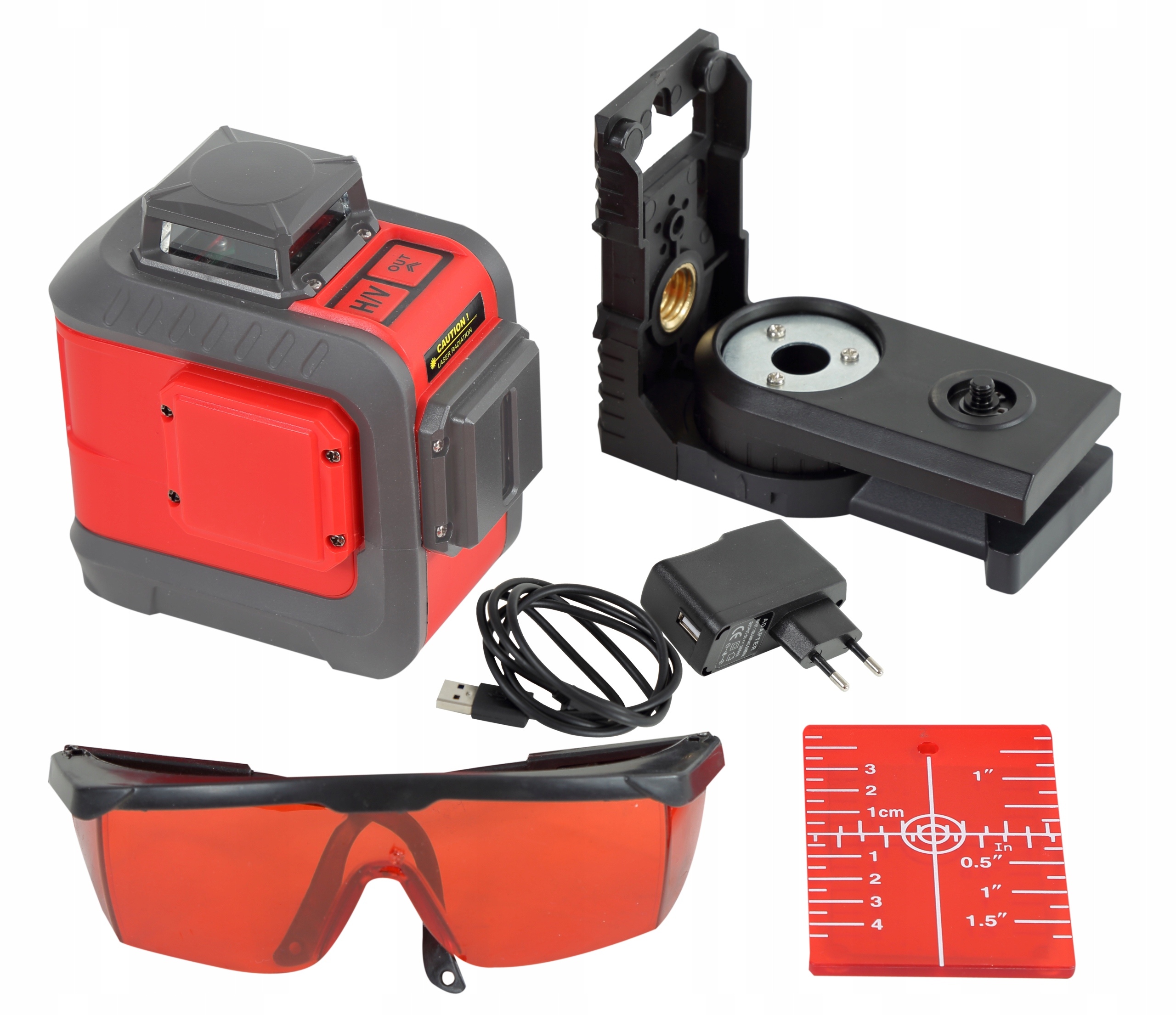 Poziomica laserowa z możliwością włączania poziomego rzutu promienia laserowego. Posiada blokadę do pracy przy nachyleniu. Uchwyt z możliwością przykręcenia i łatwego montażu poziomnicy. W uchwycie znajduje się mocny magnes, który umożliwia montowanie lasera na pionowych profilach metalowych.Klasa szczelności IP54 zapewnia odpowiednią ochronę w warunkach roboczych. W komplecie okulary polepszające widoczność promienia lasera, laserowa tablica celownicza ułatwiająca wpasowanie elementów konstrukcji względem referencji wiązki laserowej oraz ładowarka do akumualtorów z możliwością ładowania Micro-USB. Poziomica zapakowana jest w wytrzymałą torbę ułatwiającą transport.
