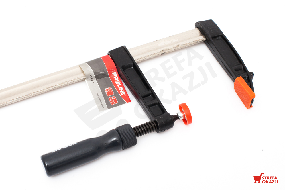 Szczęki ścisku stolarskiego wykonano z plastycznej stali i zakończono plastikowymi nakładkami.