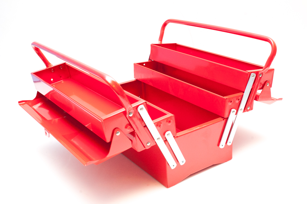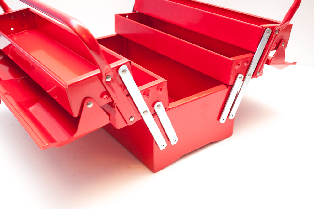 Skrzynka metalowa idealna na narzędzia. Wykonana z trwałego metalu, zaopatrzona w wytrzymałe metalowe zamki. Posiada możliwość zamykania na kłódkę.