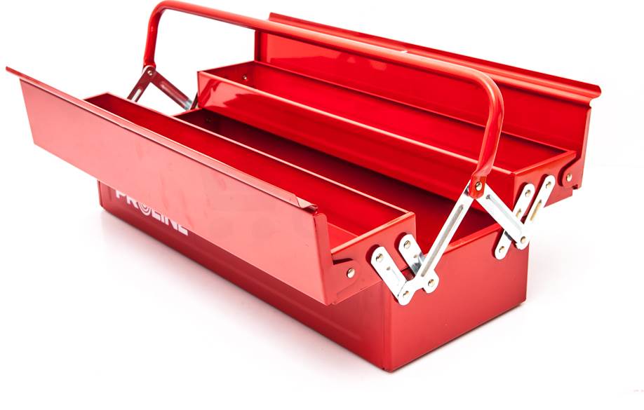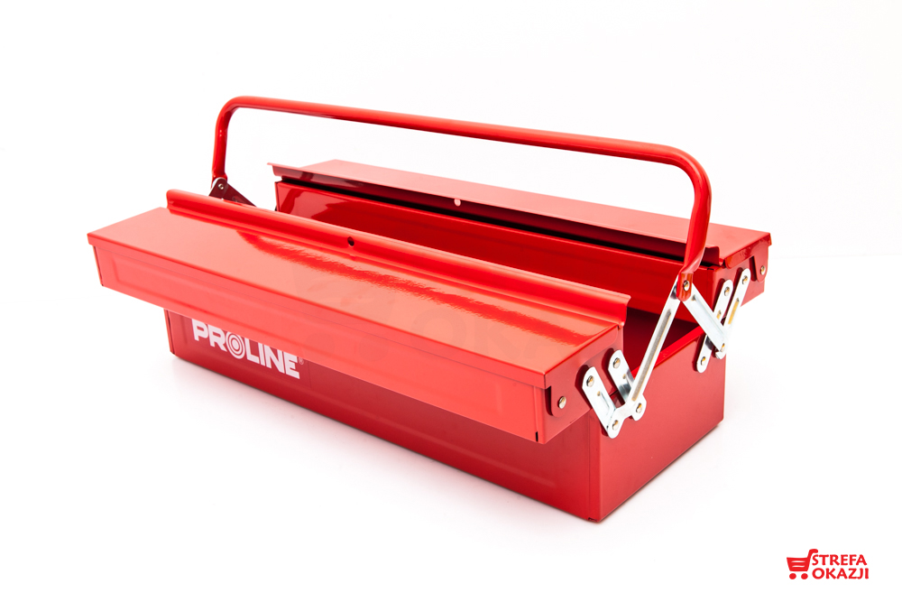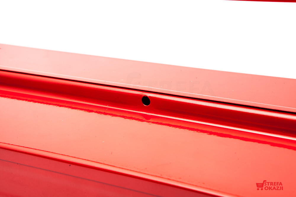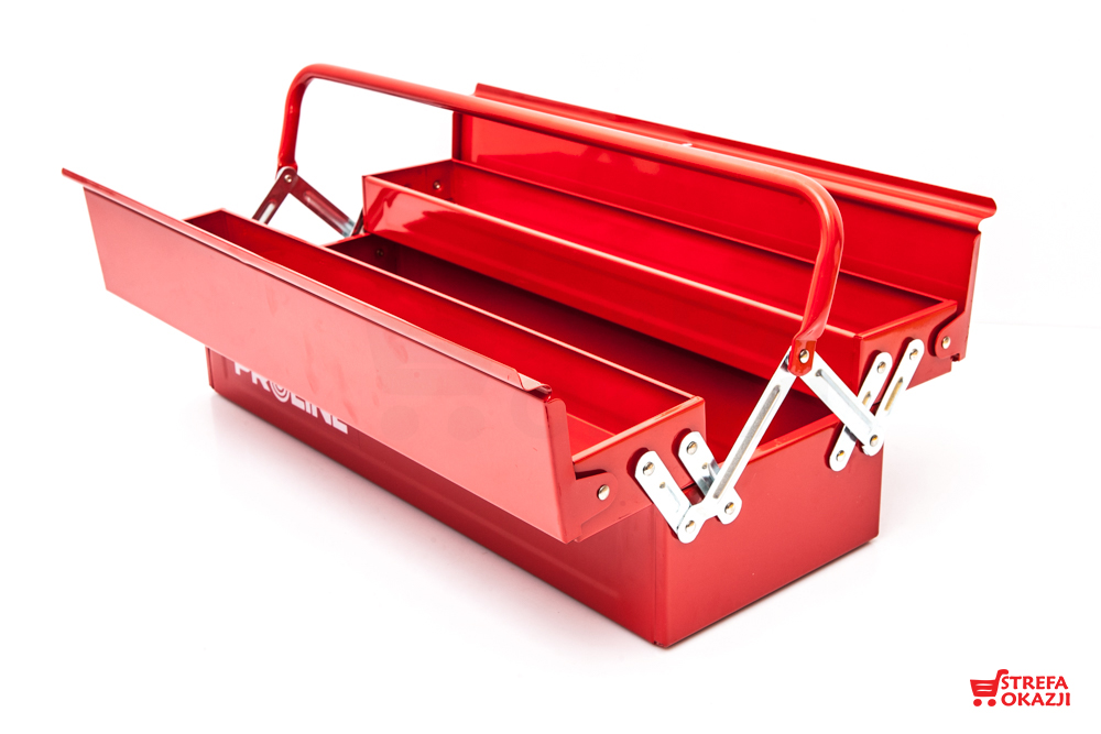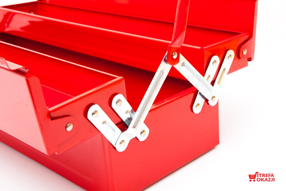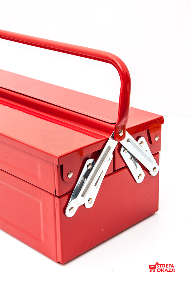 Skrzynka metalowa idealna na narzędzia. Wykonana z trwałego metalu, zaopatrzona w wytrzymałe metalowe zamki. Posiada możliwość zamykania na kłódkę.