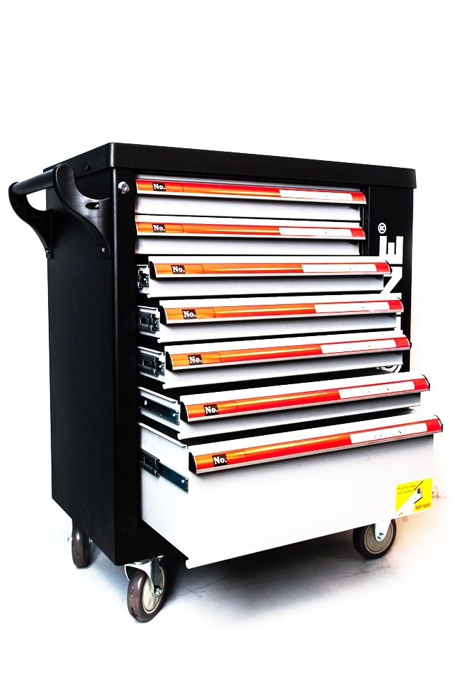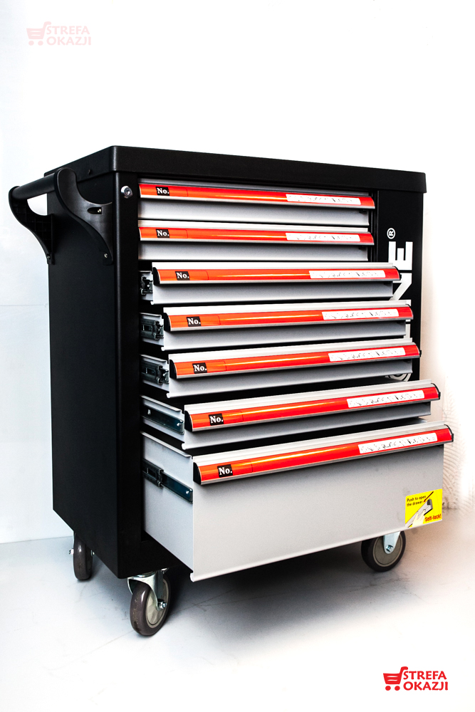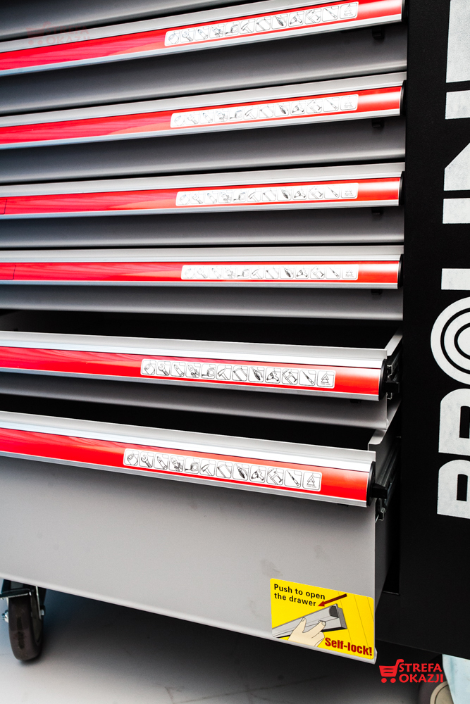 Siedem wszechstronnych szuflad pozwala na przechowywanie w sposób uporządkowany niezbędnych narzędzi i akcesoriów.