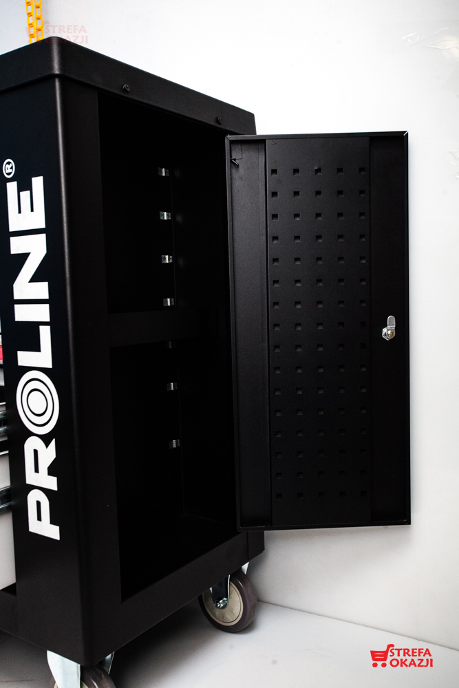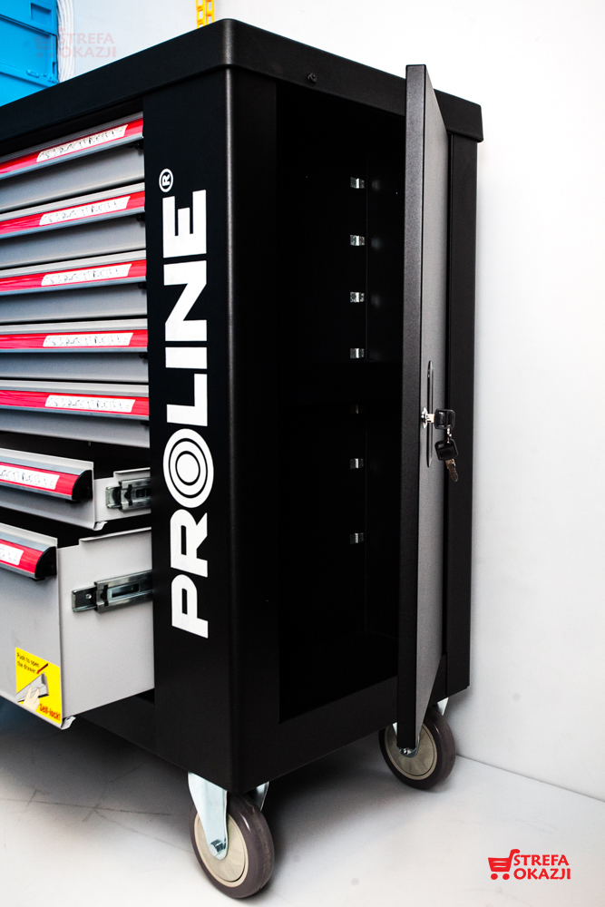Praktyczny zamykany na klucz schowek boczny umożliwia przechowywanie większych akcesoriów, narzędzi, elektronarzędzi.